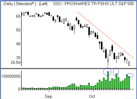 週末のブログで、バリー・リットホルツ氏が、こんなことを指摘している。下は、S&P500指数に連動するSSOの日足チャートだ。(注:SSOは、S&P500指数が1%上がると、2%上昇する仕組みになっている。) 円で囲った三カ所の、膨大な出来高に注目してほしい。ローソク足を見ると分かるが、安値をつけているけれども、結果的には、どの日も陽線で終了している。下降するトレンドラインを突破なら、W型の底が確認される。 リットホルツ氏は、ファンダメンタル分析を基盤にして銘柄を選び、売買タイミングはテクニカル分析でつかんでいる。氏は、単に底が形成されている可能性を語っただけなのだが、いつもの量を大きく上回る読者たちの書き込みが目についた。 ・「マーケットは、安値圏で予想以上に長い横ばいを展開することがあるから、ここが底になるかどうかを見極めるのは難しい。」 Patrickさん ・「テクニカル分析を使った底の予想など役に立たない。リットホルツさん、ここで買って、わざわざ損をしようとしているのですか?」 aramさん ・「私たちは、はっきり限定された要素を分析して、売買のタイミングをつかんでいる。同じやり方で、1月、3月、そして7月、私たちは好タイミングをつかむことができた。」 BRさん(バリー・リットホルツ氏) ・「W型の底というより、これは三角形だと思う。ここで底辺を割ったら、マーケットは、大きく下げるような気がする。」 Dow4000さん ・「マーケットが大底を打つときは、ここが底だ、と予想する人たちなどいない。」 Imelda Blahnikさん ・「急ぐことはない。たとえブレイクアウトがあっても、その後には戻しが来る。それに、本当の底形成には、かなりの時間もかかる。」 DLさん ・「リットホルツさん、W型の底ではなくて、これは下降するウェッジに似た形だから、ブレイクアウトではなくて、ここでは売りを考えるべきだと思う。」 Colderさん (情報源: http://bigpicture.typepad.com/comments/2008/10/sp-500-forming.html) 株の話、経済の話、何の話だろう? http://kabukeizainani.blogspot.com/
