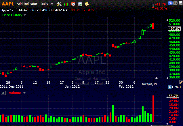 注目のアップル -- 500ドルまであと一歩 02月12日