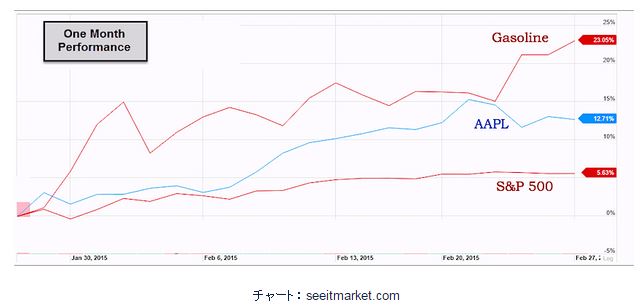・ 2009年3月に始まった米国のブルマーケットは、とても興味深い、そして場合によっては危険な段階に入ろうとしている。ミスター・マーケットは自分の好きなように行動するから、私たちには、マーケットの次の動きを正確に予測することはできない。しかし、一つ確実に言えることがある。それは、私たち投資家は、極めて馬鹿げた自己破壊的な行動を取るということだ。 -- バリー・リットホルツ(Ritholtz Wealth Management) ・ 最近1ヶ月間で目立つのは、ガソリンのETFの上昇だ。下のチャートで分かるように、ガソリンは+23.05%、アップル株は+12.71%、そしてS&P500指数は+5.63%だ。(See It Market) ・ 宿六から電話。 「昔、ゴールドマンがなかなか含蓄のある広告を出しました。 『ゆっくりカネ持ちになろう』 そうなんです。おカネに好かれるには慌てないことなんです。 あーあーあーあー…余だけはいきなりカネ持ちになりたいなぁ」 (今日の岡本) ・ 反プーチン政権指導者、射殺される=元第1副首相ネムツォフ氏―モスクワ: インタファクス通信によると、ロシアの反プーチン政権指導者ボリス・ネムツォフ氏(55)が27日夜、モスクワ中心部で暗殺された。4発の銃弾を受けて死亡したという。(時事通信) ・ ウォーレン・バフェット氏が投資の世界に入った頃、氏は毎日600ページ、750ページ、そして1000ページに及ぶ本、新聞、雑誌などを読んだ。そして今日も、バフェット氏のこの姿勢は変わらない。氏は毎日、80%の時間を読むことに割り当てている。(ビジネス・インサイダー) ・ 下の週足チャート(左側)で分かるように、S&P500指数は上昇するウェッジを形成している。このパターンには、大幅下落を起こしやすいという嫌な癖がある。(右側はダウ平均の月足チャート。1987年、2000年、2007年の例で分かるように、天井からの下落幅は回を重ねる度に大きくなっている。。) -- (ジェフ・クーパー)