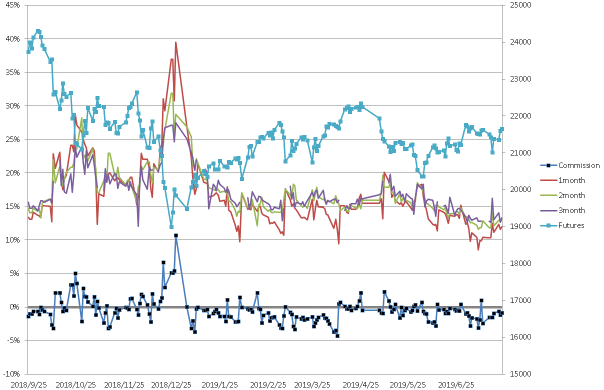 これは、日経VIと似ているのですが、ATM-IVはオプションの期近と第二限月を別々に出していますので、オプションの期近が売られ過ぎて割安になっているか、それとも期近が割高になっているかも合わせて分かるチャートになっています。