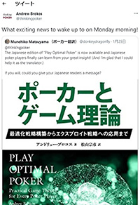 ![]() 『Play Optimal Poker』 ![]() 著者Twitter ポーカーとゲーム理論2 ![]() 本書が紹介されました! 【大学教授が解く】 ポーカーで勝ち組になる GTO理論講座 /ブラフの打ち方 ![]() 【The Night Schoolチャンネル】 大阪大学大学院経済学研究科教授 安田洋祐さん ×吉田成也さん |