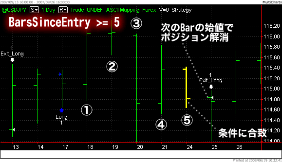 P.180 図表4-12 誤) if MarketPosition = 1 and BarsSinceEntry > 5 then ・・・ 正) if MarketPosition = 1 and BarsSinceEntry >= 5 then ・・・