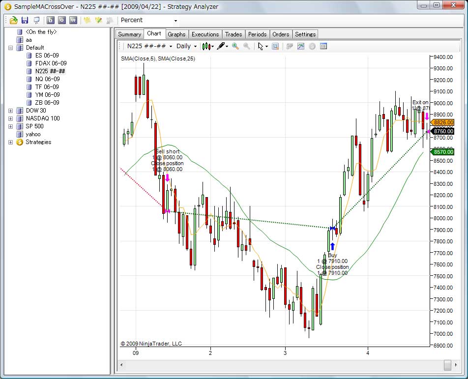 £¹¡¥´û¸¤Î¥·¥¹¥Æ¥à¤È¤·¤ÆÁȤ߹þ¤Þ¤ì¤Æ¤¤¤ë¡ÖSampleMACrossOver¡×¤òÁªÂò¤·¡¢°Üưʿ¶Ñ¤ÎÀßÄê¤ò5Æü¤È25Æü¤ËÀßÄꤹ¤ë¡£Data series¤òDay¡ÊÆü¡ˤËÀßÄꤷ¡¢¸¡¾Ú´ü´Ö¤ò1988ǯ9·î3Æü¤«¤é¤ËÀßÄꤹ¤ë¡£
