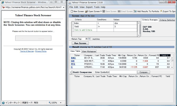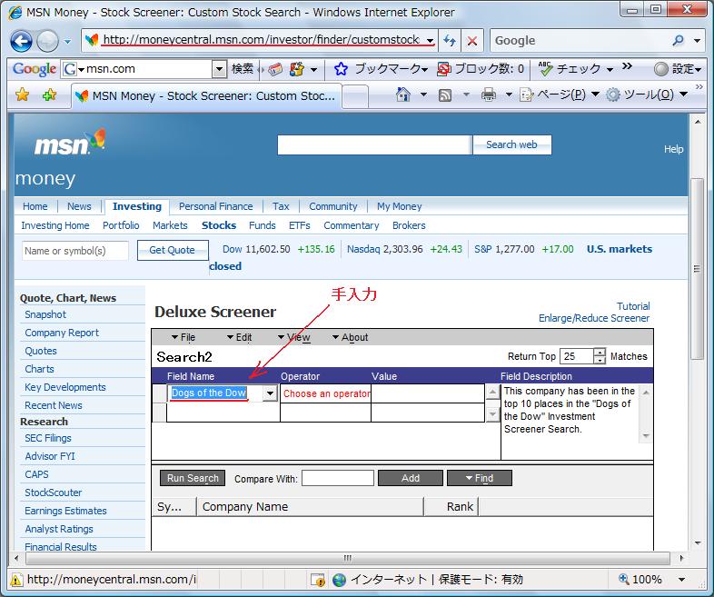 Deluxe Screener¤¬µ¯Æ°¤·¤¿¤éFind Name¤Ë¡ÖDogs of the Dow¡×¤ÈÆþÎÏ¡£Run Seach¤ò¥¯¥ê¥Ã¥¯¤¹¤ë¤È³ºÅöÌÃÊÁ¤¬¥é¥ó¥¥ó¥°½ç¤Ë12ÌÃÊÁɽ¼¨¤µ¤ì¤Þ¤¹¡£