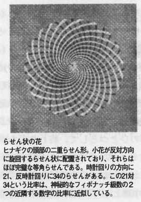 また、ハリケーンの雲、渦巻き、宇宙の銀河系なども対数らせん状に旋回している。互いに黄金分割の比率にある3本の骨で構成される人間の指でさえも、枯れていくポインセチア(観葉植物)と同じらせん状になっている。